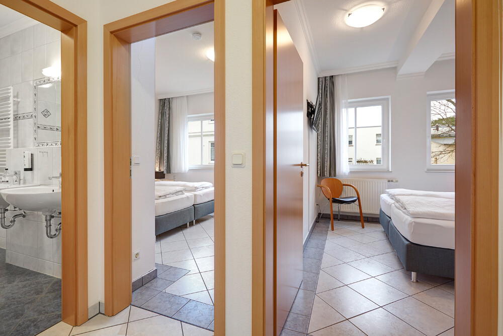 Die Bäder sind in der Wohnung zentral platziert und optimal den Zimmern zugeordnet - ein Duschbad sowie ein Vollbad mit Badewanne. Eingangsbereich und Flur sowie eine praktische ca. 2 m² große Abstellkammer runden das Raumangebot ab.