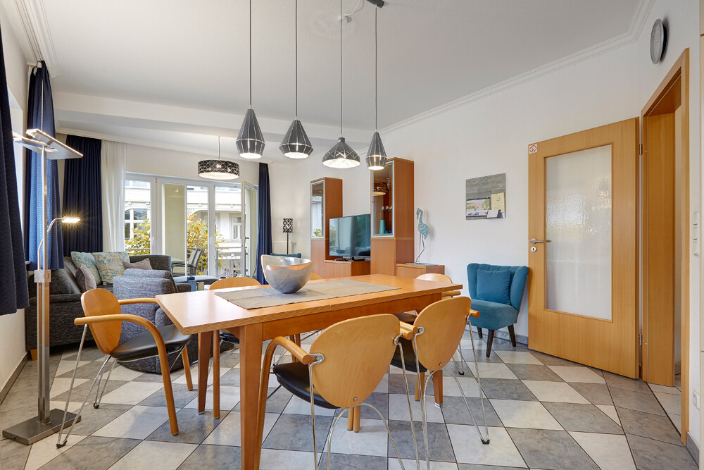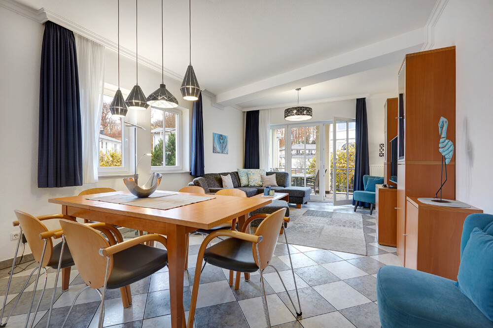 Die Dinge des täglichen Bedarfs und diverse Ärzte liegen in unmittelbarer Nähe, ebenfalls viele Restaurants, Cafés und Geschäfte laden zum Bummeln und Verweilen ein. Auch die Seebrücke sowie die Promenade von Binz sind von hier aus gut erreichbar.