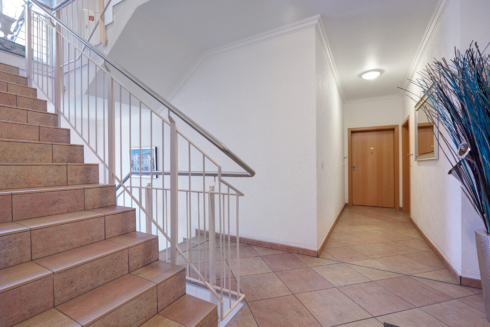 Die Ausstattung ist hochwertig, verfügt über eine Gegensprechanlage und ist vollständig mit pflegeleichten zeitlosen Fliesen ausgelegt. Parken Sie Ihren PKW bequem in der hauseigenen Tiefgarage und nutzen Sie den Fahrstuhl für ihren Weg nach oben.