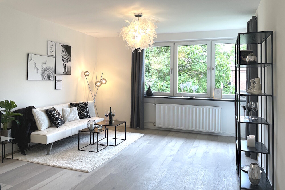 Die Wohnung liegt in einem lebendigen Hamburger Stadtteil, der urbanes Leben und entspannte Grünflächen miteinander vereint.